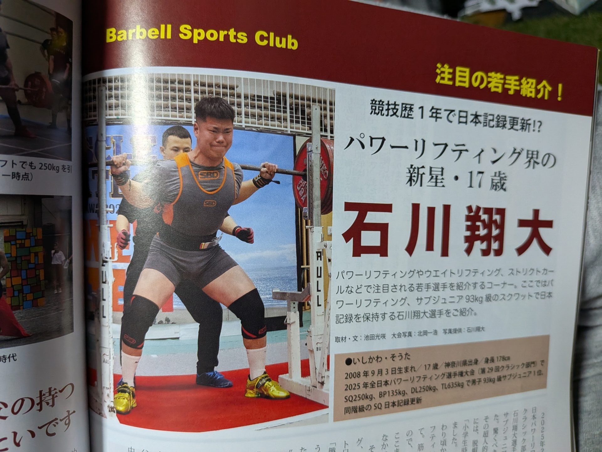 パワーリフティングを始めてまだ数年なのに、なんと既に全日本サブジュニア男子93kg級でチャンピオンになっており、さらにスクワットの日本記録も塗り替えてしまうという快挙も成し遂げており、まさにパワリフ界のミライモンスターであるSOTA選手。